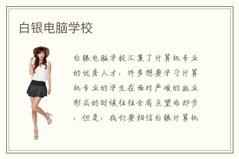 白银电脑学校汇集了计算机专业的优秀人才,许多想要学习计算机专业的学生在面对严峻的就业形式的时候往往会有点望而却步,但是,我们要相信白银计算机培训学校能带给学生们很好的学习体验。白银计算机培训中心人力安排也是很合理的,白银电脑培训班培训安排高品质的老师带领学生学习作业,保证完成布置的教学任务。白银电脑学校培训地址在什么地方?