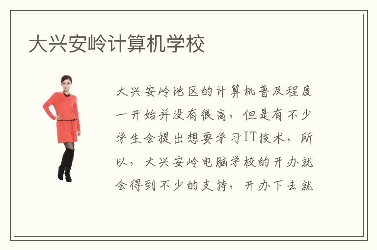 大兴安岭地区的计算机普及程度一开始并没有很高,但是有不少学生会提出想要学习IT技术,所以,大兴安岭电脑学校的开办就会得到不少的支持,开办下去就会更加容易顺畅一些了。大兴安岭计算机学校有什么特别的教学手段比较吸引学生注意力嘛?大兴安岭电脑培训机构教学水平怎么样?大兴安岭电脑学校人气好不好?大兴安岭电脑培训中心深受年轻学生的喜爱。
