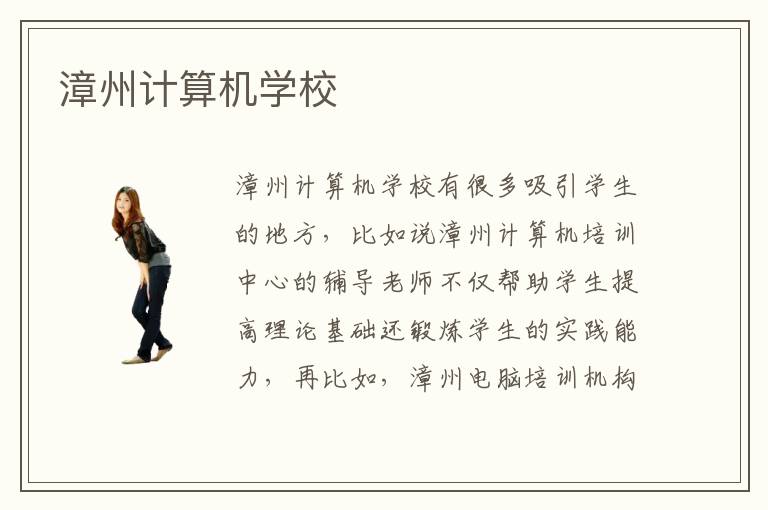漳州计算机学校有很多吸引学生的地方,比如说漳州计算机培训中心的辅导老师不仅帮助学生提高理论基础还锻炼学生的实践能力,再比如,漳州电脑培训机构有优质的合作资源,学生的学习质量有所保障。漳州电脑培训班一年的学费昂贵吗?漳州计算机学校学费贵自然培训效果也好。漳州电脑培训学校综合实力排名中比较靠前的是哪几家呢?漳州电脑学校有效果吗?
