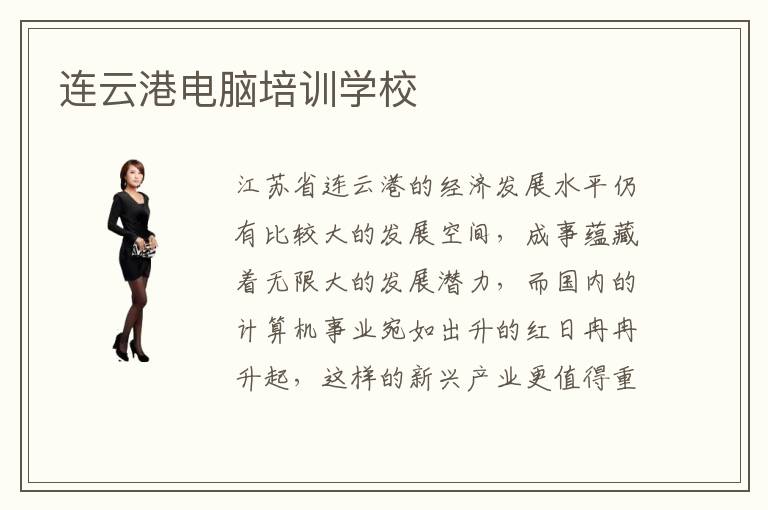 江苏省连云港的经济发展水平仍有比较大的发展空间,成事蕴藏着无限大的发展潜力,而国内的计算机事业宛如出升的红日冉冉升起,这样的新兴产业更值得重视与发展。连云港电脑培训学校顺势成立,数量上规模上都有所增加。连云港计算机培训机构教学目的是什么?连云港地区计算机市场人才缺乏,凭借连云港电脑学校计算机人才培养,人才数量明显变多了。