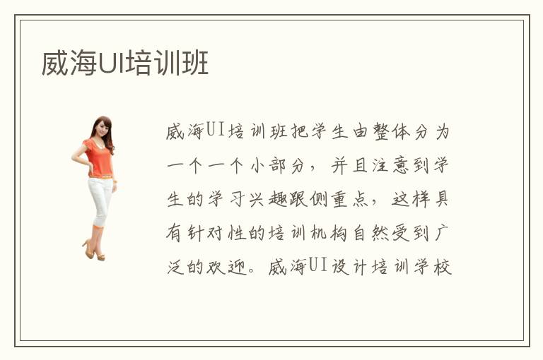 威海UI培训班把学生由整体分为一个一个小部分,并且注意到学生的学习兴趣跟侧重点,这样具有针对性的培训机构自然受到广泛的欢迎。威海UI设计培训学校教学团队专业,家长可以放心让学生到这样的威海UI设计学校中学习新的知识、接受知识的洗礼。威海UI培训机构课时收费价格一览表上可以明确地对各个层次的价格进行一个划分,威海UI培训学校经济效益高。
