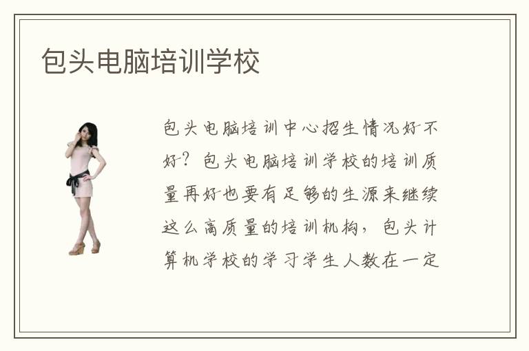 包头电脑培训中心招生情况好不好?包头电脑培训学校的培训质量再好也要有足够的生源来继续这么高质量的培训机构,包头计算机学校的学习学生人数在一定程度上显示了学校的实力。包头计算机培训机构宣传力度也对学生在选择电脑培训机构时有了很大程度的影响。如何进行包头计算机培训学校的挑选是每一个即将步入培训学校学习的人应该考虑到的事情。