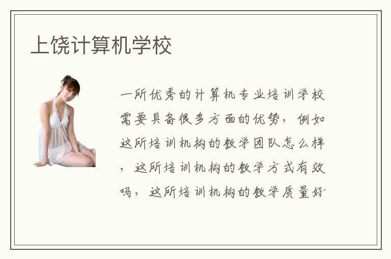 一所优秀的计算机专业培训学校需要具备很多方面的优势,例如这所培训机构的教学团队怎么样,这所培训机构的教学方式有效吗,这所培训机构的教学质量好不好等等问题。上饶计算机学校成立至今,大家对于它的评价都是不错的,因为上饶计算机学校拥有国内顶尖的专业计算机教学团队,打造的是多样化的培训方式也就给了上饶计算机学校的在校学员更多学习方式的选择机会。