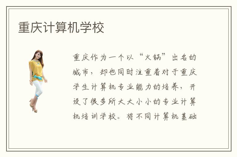 重庆作为一个以“火锅”出名的城市,却也同时注重着对于重庆学生计算机专业能力的培养,开设了很多所大大小小的专业计算机培训学校。将不同计算机基础以及专业学习的同学进行分班教学是重庆计算机学校的教学特色,这样的教学模式也使得重庆计算机学校的教学质量有了很大的提高。面对这种具有针对性的教学,学员们的专业学习效果也会事半功倍,感兴趣的同学可以来重庆计算机学校看看。