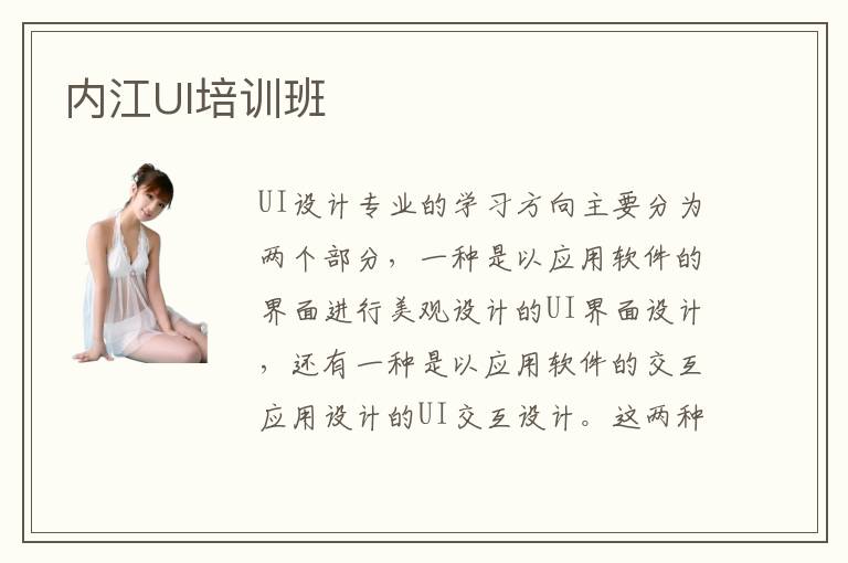 UI设计专业的学习方向主要分为两个部分,一种是以应用软件的界面进行美观设计的UI界面设计,还有一种是以应用软件的交互应用设计的UI交互设计。这两种学习方向不同也就使得学习的相关课程有所区别,所针对的计算机技术也是不同的,对于很多女生而言UI软件界面设计还是比较适合去学习的。那么,内江UI培训班在UI界面设计方面的课程主要安排了哪些呢?内江UI培训班的学习环境怎么样呢?