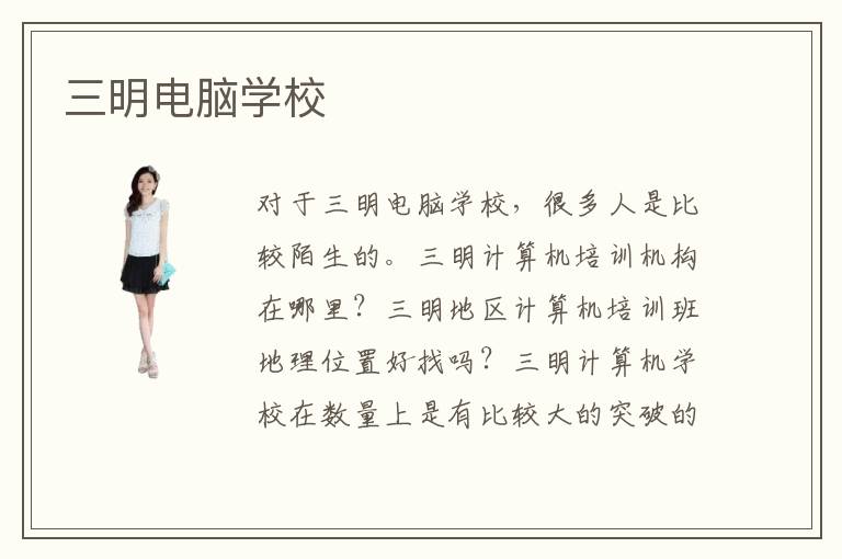 对于三明电脑学校,很多人是比较陌生的。三明计算机培训机构在哪里?三明地区计算机培训班地理位置好找吗?三明计算机学校在数量上是有比较大的突破的,学习计算机技术的学生大多抱着比较坚定的学习信心的,虽然知道计算机技术的学习过程会比较困难,精通计算机技术需要有足够强大的逻辑思维。学生要进入三明计算机学校中心认真地学习知识。