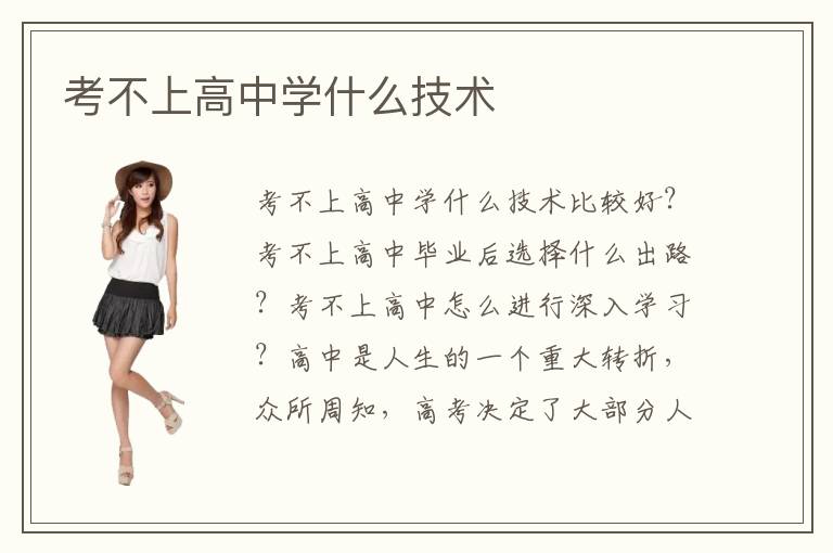 考不上高中学什么技术比较好?考不上高中毕业后选择什么出路?考不上高中怎么进行深入学习?高中是人生的一个重大转折,众所周知,高考决定了大部分人的未来人生出路,但是不仅仅要把握住高考这个方向,如果没有考上高中就应该提早做好新的准备,比如想好自己应该学习什么样的技术才能让自己有好的出路?考不上高中后学生们应该根据时代选择热门的专业。