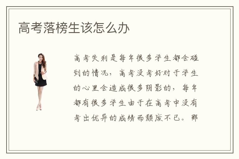 高考失利是每年很多学生都会碰到的情况,高考没考好对于学生的心里会造成很多阴影的,每年都有很多学生由于在高考中没有考出优异的成绩而颓废不已。那么,高考落榜生应该怎么办呢?这是很多高考失利的学生以及家长们都想要了解的问题。高考落榜生该怎么办?其实高考失利后也是进行专业课程学习的二次选择机会,选择一门具有很好发展前景的专业是保障未来就业的基础。