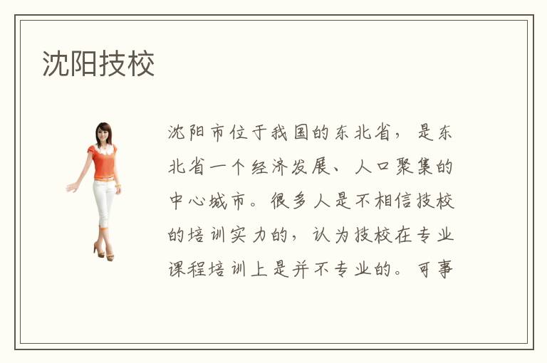沈阳市位于我国的东北省,是东北省一个经济发展、人口聚集的中心城市。很多人是不相信技校的培训实力的,认为技校在专业课程培训上是并不专业的。可事实并不如此,沈阳技校是沈阳市民进行专业学习培训的一个靠谱平台。沈阳技校开设了各种各样的专业课程,有着自己的收费标准,不同的专业安排相应的课程,对于学费的收取也是不同的,相比较而言计算机相关专业的培训费用普遍是比较高的。
