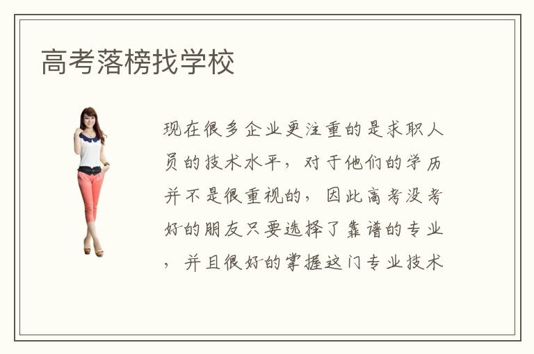 现在很多企业更注重的是求职人员的技术水平,对于他们的学历并不是很重视的,因此高考没考好的朋友只要选择了靠谱的专业,并且很好的掌握这门专业技术,未来还是会有很大的机会找到满意工作的。高考落榜想要找一些名牌学校进行专业学习几乎是不可能的,名牌大学对于学生的入学是有成绩要求的,因此高考落榜找学校可以考虑一些比较靠谱的职业技术培训学校。