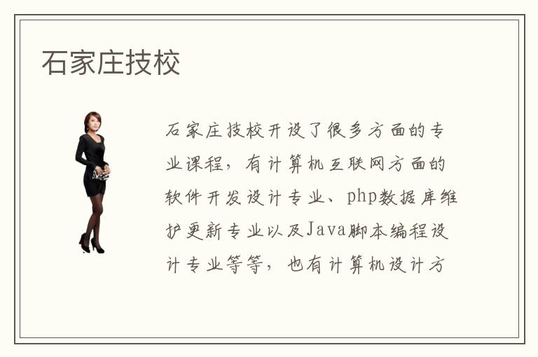 石家庄技校开设了很多方面的专业课程,有计算机互联网方面的软件开发设计专业、php数据库维护更新专业以及Java脚本编程设计专业等等,也有计算机设计方面的UI软件设计专业和web网站前端设计专业等等,这些专业课程都是石家庄技校中比较热门的。那么,石家庄技校的教学方式是什么样的呢?石家庄技校主要是采取“一对一、点对点”的教学模式,根据学员们能力基础的不同进行因材施教。