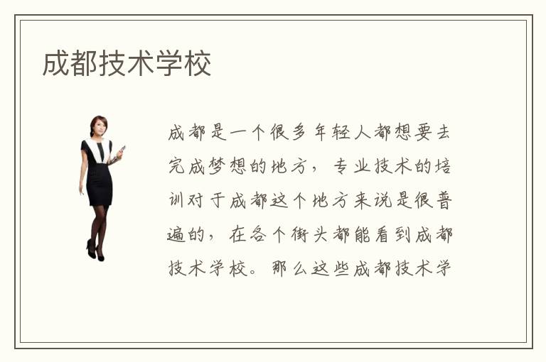成都是一个很多年轻人都想要去完成梦想的地方,专业技术的培训对于成都这个地方来说是很普遍的,在各个街头都能看到成都技术学校。那么这些成都技术学校的教学质量怎么样呢?成都技术学校拥有成都各行各业丰富项目经验的资深人才,以及各大名校毕业的专业系科高材生,因此成都技术学校的教学团队总的来说还是很靠谱的,在这样靠谱的教学团队培训下相信对于专业技术的学习是很有帮助的。