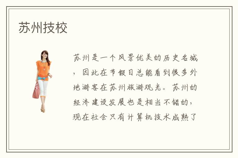 苏州是一个风景优美的历史名城,因此在节假日总能看到很多外地游客在苏州旅游观光。苏州的经济建设发展也是相当不错的,现在社会只有计算机技术成熟了才能推动社会经济的发展,因此苏州对于计算机专业技术人才的培养还是很上心的,成立了很多苏州技校,其中开设了很多计算机相关课程。苏州技校的成立方便了苏州学生们进行专业的学习,那么,苏州技校的最新排名你知道吗?