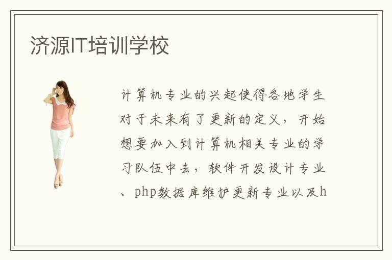 计算机专业的兴起使得各地学生对于未来有了更新的定义,开始想要加入到计算机相关专业的学习队伍中去,软件开发设计专业、php数据库维护更新专业以及html5网站开发设计专业等都受到学生的广泛好评。这些专业课程在济源IT培训学校的招生专业中都可以找到,因此感兴趣的同学可以去济源IT培训学校深入了解一下,以免错过济源IT培训学校相关比较靠谱的专业学习平台。