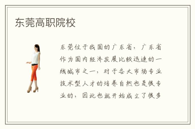 东莞位于我国的广东省,广东省作为国内经济发展比较迅速的一线城市之一,对于各大市场专业技术型人才的培养自然也是很专业的,因此也就开始成立了很多东莞高职院校。东莞高职院校开设了各种专业,有当下比较热门的各种计算机专业,也有美术设计类的专业,在东莞高职院校的培训过程中大家可以感受到高质量的专业教学,因此东莞高职院校的培训效果还是很不错的。