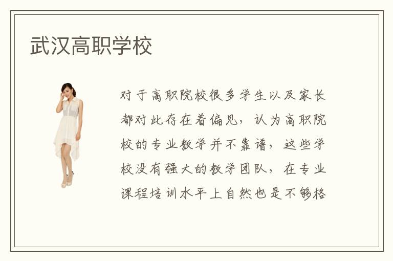 对于高职院校很多学生以及家长都对此存在着偏见,认为高职院校的专业教学并不靠谱,这些学校没有强大的教学团队,在专业课程培训水平上自然也是不够格的,是反对孩子进入这些高职院校学习专业技术的。其实这只是少部分高职院校的情况,大多数的武汉高职学校还是挺靠谱的,武汉高职学校课程新颖、教学专业,因此只要学员们自己足够努力,再通过武汉高职学校专业化的培训一定可以短时间学好技术。