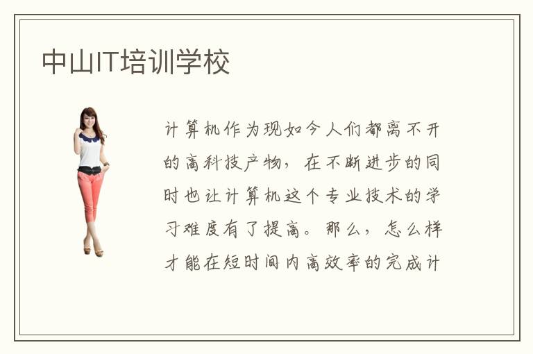 计算机作为现如今人们都离不开的高科技产物,在不断进步的同时也让计算机这个专业技术的学习难度有了提高。那么,怎么样才能在短时间内高效率的完成计算机相关专业技术的学习呢?找到一所靠谱的专业计算机培训学校是很关键的一步,中山IT培训学校就是这样一所各方面实力都比较靠谱的学习平台。中山IT培训学校拥有国内顶尖的专业电脑教学团队,对于IT专业的培训是很自信的。