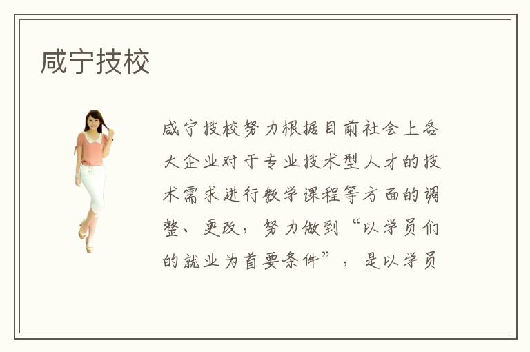 咸宁技校努力根据目前社会上各大企业对于专业技术型人才的技术需求进行教学课程等方面的调整、更改,努力做到“以学员们的就业为首要条件”,是以学员们未来的就业工作为目的有针对性的开课培训。在教学团队这一方面咸宁技校也不会让大家失望,咸宁技校的教学老师都拥有高超的专业技术以及丰富的实践项目经验,在技术培训这一方面也在很有经验的,因此咸宁技校确实值得大家信任。