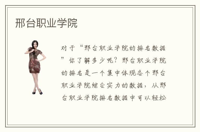 对于“邢台职业学院的排名数据”你了解多少呢?邢台职业学院的排名是一个集中体现各个邢台职业学院综合实力的数据,从邢台职业学院排名数据中可以轻松的看出各大邢台职业学院在专业教学各方面的优缺点,以及哪些综合实力比较靠谱的邢台职业学院,因此对于邢台职业学院排名数据的认识大家一定要注意。然而邢台职业学院排名数据也是在随着各大职业学院的发展而变化的,需要不断的关注。