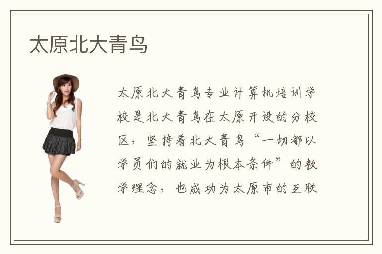 太原北大青鸟北大青鸟专业计算机培训学校是北大青鸟在太原开设的分校区,坚持着北大青鸟“一切都以学员们的就业为根本条件”的教学理念,也成功为太原市的互联网行业培养了一批又一批优秀的IT技术型人才,成为了太原市计算机教育数一数二的计算机培训机构。太原北大青鸟计算机培训学校拥有权威的教学团队、一流的教学质量以及合理的教学课程,使得太原北大青鸟的学员们拥有很好的学习效果。