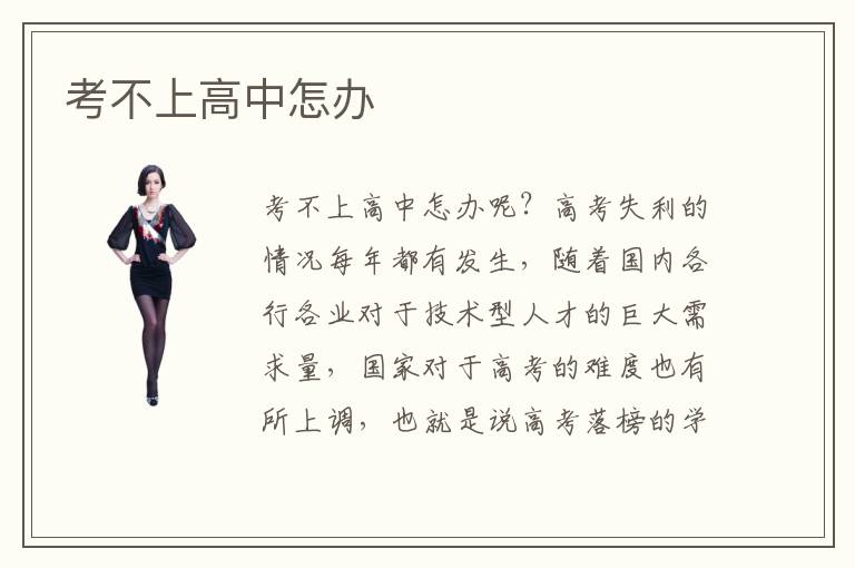 考不上高中怎办呢?高考失利的情况每年都有发生,随着国内各行各业对于技术型人才的巨大需求量,国家对于高考的难度也有所上调,也就是说高考落榜的学生也将会越来越多。其实高考落榜的人也可以有很好的未来,主要就在于你要掌握好一门专业技术,而对于高考落榜的人来说,专业技术培训学校是学好专业最有效的方式,考不上高中最重要的一步就是要调整好自己的心态。