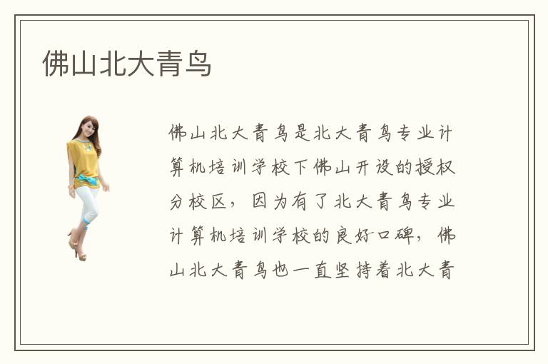 佛山北大青鸟是北大青鸟专业计算机培训学校下佛山开设的授权分校区,因为有了北大青鸟专业计算机培训学校的良好口碑,佛山北大青鸟也一直坚持着北大青鸟“用良心做好教育”的口碑进行课程培训,毋庸置疑的佛山北大青鸟成为了佛山市民心目中排名第一的专业计算机培训学校。佛山北大青鸟的名气并不靠努力宣传得来的,相反它更多的是进行专业课程的调整更新,良好口碑完全是通过教学实力得来的。