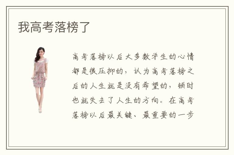 高考落榜以后大多数学生的心情都是很压抑的,认为高考落榜之后的人生就是没有希望的,顿时也就失去了人生的方向。在高考落榜以后最关键、最重要的一步也就是要学会从失败痛苦中走出来,要用完美的心情迎接新的未来。对于大多同学来说,从高考失败中振作起来并不容易,那么在“我高考落榜了”以后应该怎样调节心情呢?高考落榜以后要做的事情有哪些呢?
