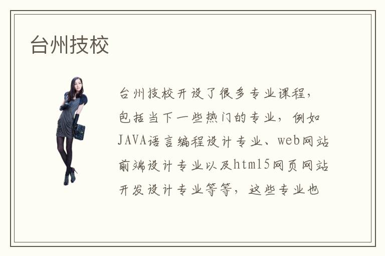 台州技校开设了很多专业课程,包括当下一些热门的专业,例如JAVA语言编程设计专业、web网站前端设计专业以及html5网页网站开发设计专业等等,这些专业也是台州技校的热门专业。台州技校是以培养学员们技术专业为主的,因此对于学员们的入学成绩要求并不很高,然而现如今学好专业才是重点,企业更看中的是求职者的专业技术。那么,你知道在台州技校学习专业技术所需要的学费大概是多少呢?