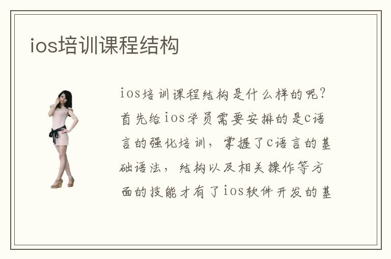 ios培训课程结构是什么样的呢?首先给ios学员需要安排的是c语言的强化培训,掌握了c语言的基础语法,结构以及相关操作等方面的技能才有了ios软件开发的基础知识。其次还要训练学员对于ui设计的能力,现如今各类应用软件的界面离不开精美的ui设计。还需要学习各种其他语言的编写能力,这样设计出来的ios软件才会更受欢迎,循序渐进的教学方式能让学员更好的掌握ios技能。