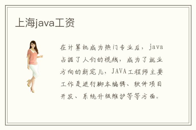 在计算机成为热门专业后,java占据了人们的视线,成为了就业方向的新宠儿,JAVA工程师主要工作是进行脚本编辑、软件项目开发、系统升级维护等等方面。以java为就业导向的人毕业后的薪资情况良好吗?从事java编程设计的人工资普遍情况是什么样子的?上海java工资java工资一般多少?上海地区JAVA工程师的薪资水平线在什么位置?请继续了解关注上海java薪资情况。