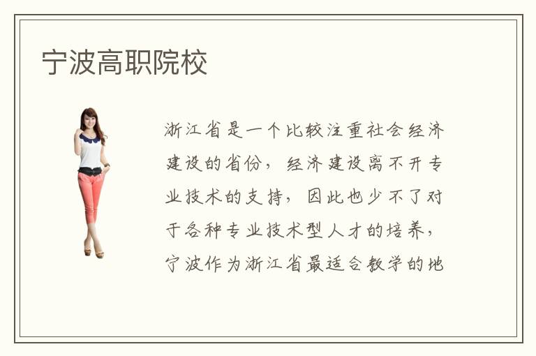 浙江省是一个比较注重社会经济建设的省份,经济建设离不开专业技术的支持,因此也少不了对于各种专业技术型人才的培养,宁波作为浙江省最适合教学的地区,成立了很多宁波高职院校。宁波高职院校靠谱不靠谱呢?宁波高职院校的专业化教学会使得学员们在专业学习过程中提高学习效率,降低学习难度,从而更快更好的完成相关专业的学习,当然也是需要进行宁波高职院校谨慎选择的。