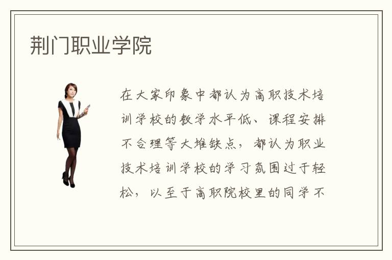 在大家印象中都认为高职技术培训学校的教学水平低、课程安排不合理等大堆缺点,都认为职业技术培训学校的学习氛围过于轻松,以至于高职院校里的同学不能享受到更高质量的专业培训。在愉快舒适的环境下学习是能够提高对于专业学习兴趣的,然而过于舒适则会让学生对于专业学习产生懈怠。那么,你知道荆门职业学院的学习氛围是什么样的吗?荆门职业学院的教学质量靠谱不靠谱呢?