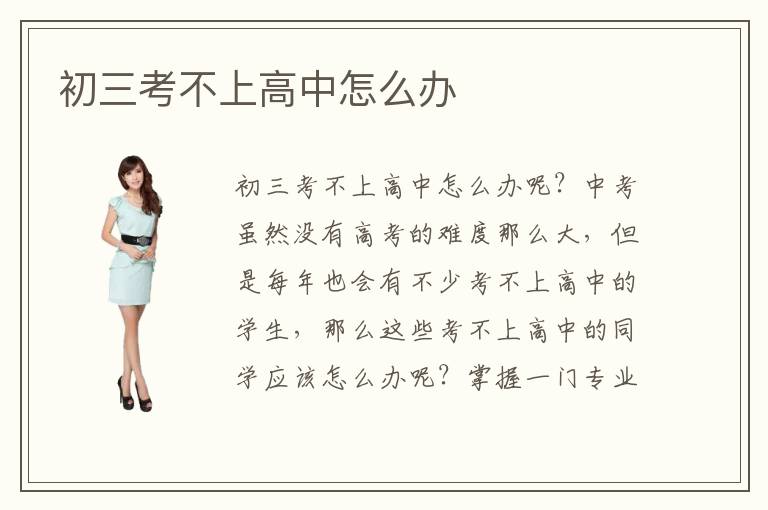初三考不上高中怎么办呢?中考虽然没有高考的难度那么大,但是每年也会有不少考不上高中的学生,那么这些考不上高中的同学应该怎么办呢?掌握一门专业技术是在这个社会存在的根本保障,这些同学可以根据目前社会发展形势,选择一门具有广阔发展前景的专业技术进行学习,这样才能为以后的就业增添一些保障,因此考不上高中的同学选择一所专业技术培训学校是当务之急。