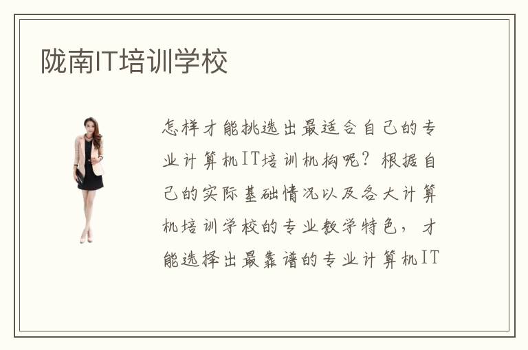 怎样才能挑选出最适合自己的专业计算机IT培训机构呢?根据自己的实际基础情况以及各大计算机培训学校的专业教学特色,才能选择出最靠谱的专业计算机IT培训学校。陇南IT培训学校的最新排名是可以帮助各位学员在选择时更好的了解各大学校的方方面面,从而根据自己的需求选择出合适的学校。那么,你知道陇南IT培训学校的最新排名数据吗?各大陇南IT培训学校的排名情况如何呢?