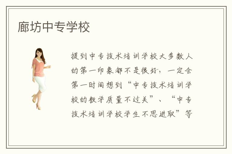 提到中专技术培训学校大多数人的第一印象都不是很好,一定会第一时间想到“中专技术培训学校的教学质量不过关”、“中专技术培训学校学生不思进取”等等负面信息,这只是少部分中专技术培训学校的情况,大多数中专技术培训学校的在专业教学方面还是很专业的。例如廊坊中专学校,廊坊中专学校就是一所比较靠谱的专业技术培训平台,也是廊坊市大多数人学习专业技术的地方。