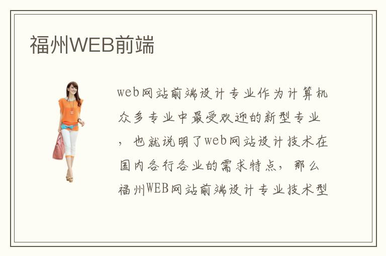 web网站前端设计专业作为计算机众多专业中最受欢迎的新型专业,也就说明了web网站设计技术在国内各行各业的需求特点,那么福州WEB网站前端设计专业技术型人才的就业前景怎么样呢?各个企业都应该会有官方网站,官方网站相当于企业的门面,不断更新维护官网信息是很多企业注重的,这也就是为什么现在很多企业急需web网站设计师的原因了,web网站前端设计师的就业前景很广阔。