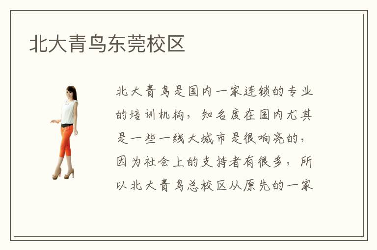 北大青鸟是国内一家连锁的专业的培训机构,知名度在国内尤其是一些一线大城市是很响亮的,因为社会上的支持者有很多,所以北大青鸟总校区从原先的一家发展为连锁的各地分校。比如,其中一家为北大青鸟东莞校区办得还是很有特色的。北大青鸟东莞分校每年的招生力度都是比较大的,因为东莞北大青鸟培训学校官方介绍能够真正地起到吸引学生的作用。