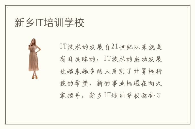 IT技术的发展自21世纪以来就是有目共睹的,IT技术的成功发展让越来越多的人看到了计算机科技的希望,新的事业机遇在向大家招手。新乡IT培训学校弥补了自学IT技术时学习效率低、学习方式差、学习状态不佳的问题,能够集中学生们的注意力,保持IT技术的教育新鲜感。新乡IT培训机构发展是很有潜力的。新乡IT技术发展潜力大,学生在新乡IT技术学校发展会比较成功。