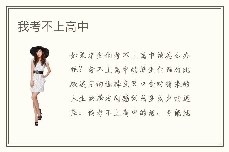 如果学生们考不上高中该怎么办呢?考不上高中的学生们面对比较迷茫的选择交叉口会对将来的人生抉择方向感到或多或少的迷茫。我考不上高中的话,可能就会认真地审视自己的历年学习过程,然后感觉自己的适应学习方向是继续学业任务还是选择专业技术。考不上高中的学生们要敢于直面自己的真是内心。考不上高中后具体该怎么做?如果有同学考不上高中该怎么办?