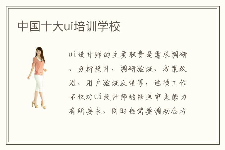 ui设计师的主要职责是需求调研、分析设计、调研验证、方案改进、用户验证反馈等,这项工作不仅对ui设计师的绘画审美能力有所要求,同时也需要调动各方面的专业素养包括科技和文学等等方面。中国十大ui培训机构是哪几家?中国十大ui培训学校的培训效果怎么样?中国十大UI培训学校的排名口碑比较情况是什么样的呢?中国十大ui培训学校好不好?