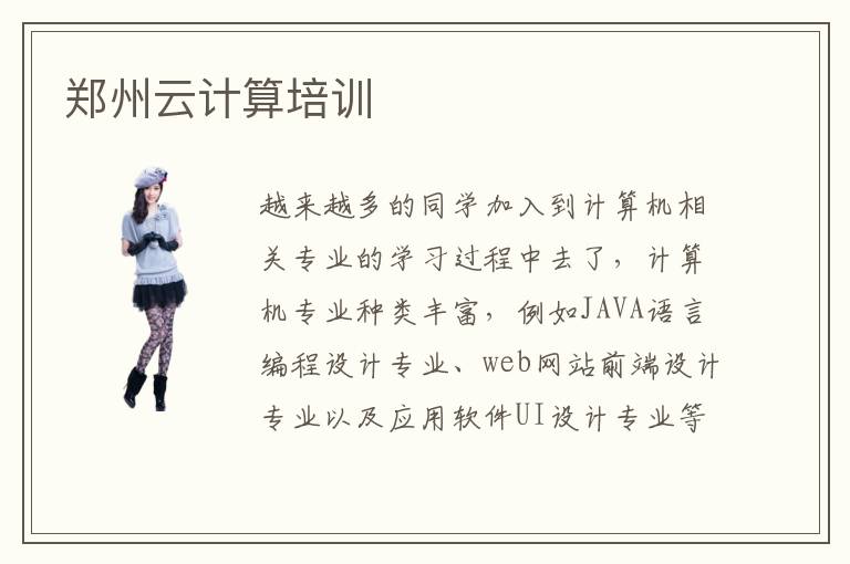 越来越多的同学加入到计算机相关专业的学习过程中去了,计算机专业种类丰富,例如JAVA语言编程设计专业、web网站前端设计专业以及应用软件UI设计专业等等都是比较热门的计算机专业。不同的专业需要学习不同的课程,只有掌握了正确的、适合自己的学习方式才能更好的完成专业的学习。那么,郑州云计算培训云计算培训机构的专业教学质量好不好呢?郑州云计算培训机构的教学水平怎么样呢?