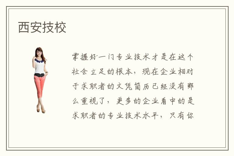 掌握好一门专业技术才是在这个社会立足的根本,现在企业相对于求职者的文凭简历已经没有那么重视了,更多的企业看中的是求职者的专业技术水平,只有你的专业技术达到企业的用人标准才会被录用,假设你的文凭学历再完美都是无用的。可见学好一门专业技术在现今这个社会是很重要的,首先要做的一点就是找到一所靠谱的专业技术培训学校,那么西安技校怎么样呢?