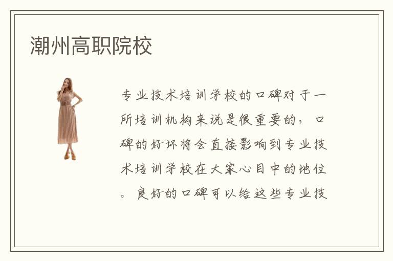 专业技术培训学校的口碑对于一所培训机构来说是很重要的,口碑的好坏将会直接影响到专业技术培训学校在大家心目中的地位。良好的口碑可以给这些专业技术培训学校带来很多优势,是大家深入了解这些培训机构的基础,因此打造良好的口碑是很多高职技术培训学校的必修课。潮州高职院校的口碑总的来说还是不错的,是潮州市民心目中比较靠谱的专业技术培训平台。