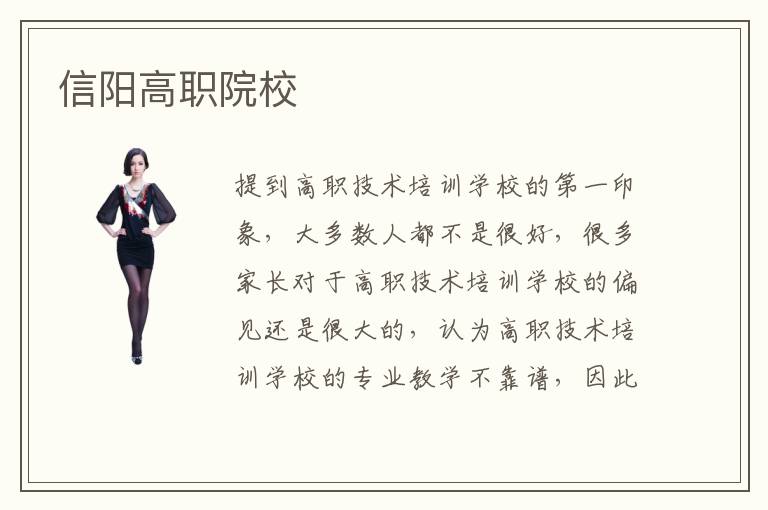 提到高职技术培训学校的第一印象,大多数人都不是很好,很多家长对于高职技术培训学校的偏见还是很大的,认为高职技术培训学校的专业教学不靠谱,因此也是很排斥自己的孩子进入高职技术培训学校进行专业学习的。信阳高职院校在师资力量、教学方式以及课程设计等方面还是比较靠谱的,因此信阳高职院校也凭借自己的教学实力获得了大多数家长和同学的肯定。