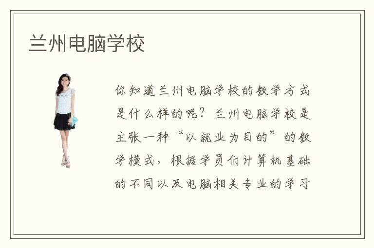 你知道兰州电脑学校的教学方式是什么样的呢?兰州电脑学校是主张一种“以就业为目的”的教学模式,根据学员们计算机基础的不同以及电脑相关专业的学习进度不同,将兰州电脑学校的在校学员进行分班处理,会分为兰州电脑学校基础培训班和兰州电脑学校提升培训班。兰州电脑学校正是因为这种独特的教学模式,大大提高了学员们的学习效率,这种教学方式也获得大量很大的肯定。