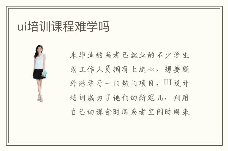 未毕业的或者已就业的不少学生或工作人员拥有上进心,想要额外地学习一门热门项目,UI设计培训成为了他们的新宠儿,利用自己的课余时间或者空闲时间来学习UI设计确实有一定的难度,但是我们相信,UI培训机构的相关培训一定可以给我们的学习带来质的飞跃。UI培训课程难学吗?UI培训课程难度系数大吗?UI培训课程高效地保证就业前景。