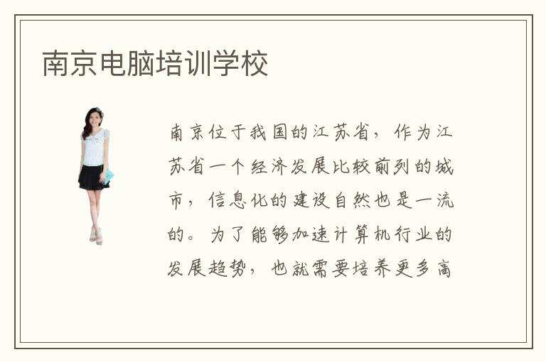 南京位于我国的江苏省,作为江苏省一个经济发展比较前列的城市,信息化的建设自然也是一流的。为了能够加速计算机行业的发展趋势,也就需要培养更多高端的计算机专业技术型人才,为此南京的教育行业做出了相应的计划,特别在南京开设了很多大大小小的专业计算机培训学校,感兴趣的同学可以去了解一下这些南京电脑培训学校。那么,这些南京电脑培训电脑培训学校到底哪家的专业教学比较靠谱呢?