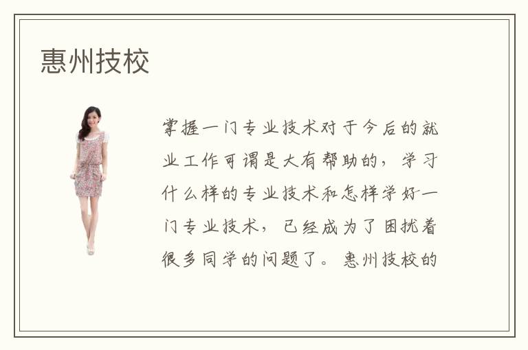 掌握一门专业技术对于今后的就业工作可谓是大有帮助的,学习什么样的专业技术和怎样学好一门专业技术,已经成为了困扰着很多同学的问题了。惠州技校的成立就很好的解决了这些问题,惠州技校开设了各种各样的专业技术课程,根据学员们基础能力以及就业方向的不同,对于同学们的专业选择提供了宝贵的参考意见,而专业化的课程培训也使得学员们的学习效果有了很大的提升。