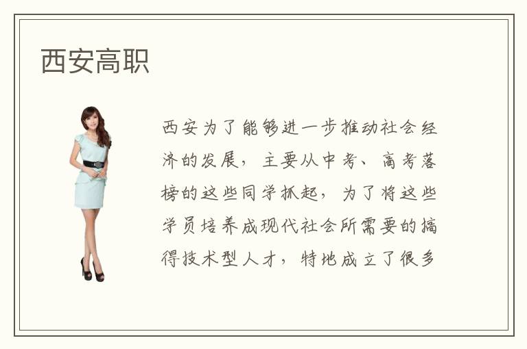 西安为了能够进一步推动社会经济的发展,主要从中考、高考落榜的这些同学抓起,为了将这些学员培养成现代社会所需要的搞得技术型人才,特地成立了很多专业的西安高职学校。那么,这些西安高职学校主要开设了哪些呢?有哪些是比较靠谱的呢?就各方面综合水平而言,最有名的西安高职院校还是西安尚学堂高职技术培训学校了,这所高职技术学院也是广大西安市民心目中比较靠谱的。