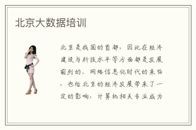 北京是我国的首都,因此在经济建设与科技水平等方面都是发展前列的。网络信息化时代的来临,也给北京的经济发展带来了一定的影响,计算机相关专业成为了当下炙手可热的学习专业,计算机相关专业技术型人才也是各大企业争相招聘的。大数据网络是各大企业发展的必然趋势,大数据网络培训也是很有必要的,对于大数据的概念或许你还不了解,但是北京大数据培训已经开始了。